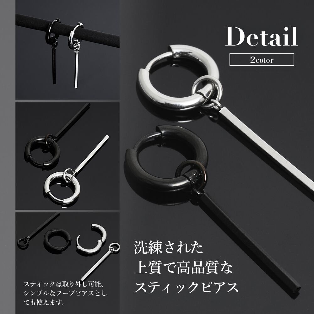 フープピアス スティックピアス 防弾少年団 BTS ジミン 両耳セット スティック ピアス ステンレス アレルギー対応 金属アレルギー リング ロング 鎖 メンズ レディース 18G リング わっか 銀 黒 たれさがり ぶらさがり (A040)