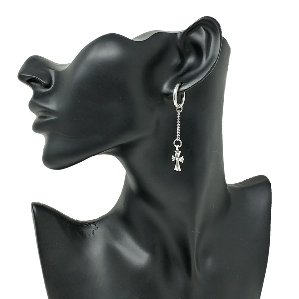 ピアス フープピアス フープ チェーン チェーンピアス ステンレスピアス ステンレス 鎖 シンプル 両耳セット ピアス わっか キャッチ ゆらゆら 揺れる ゆれる たれさがり ぶらさがり 落ちない GD g-dragon 十字架 ロング クロスピアス クロス (A029)