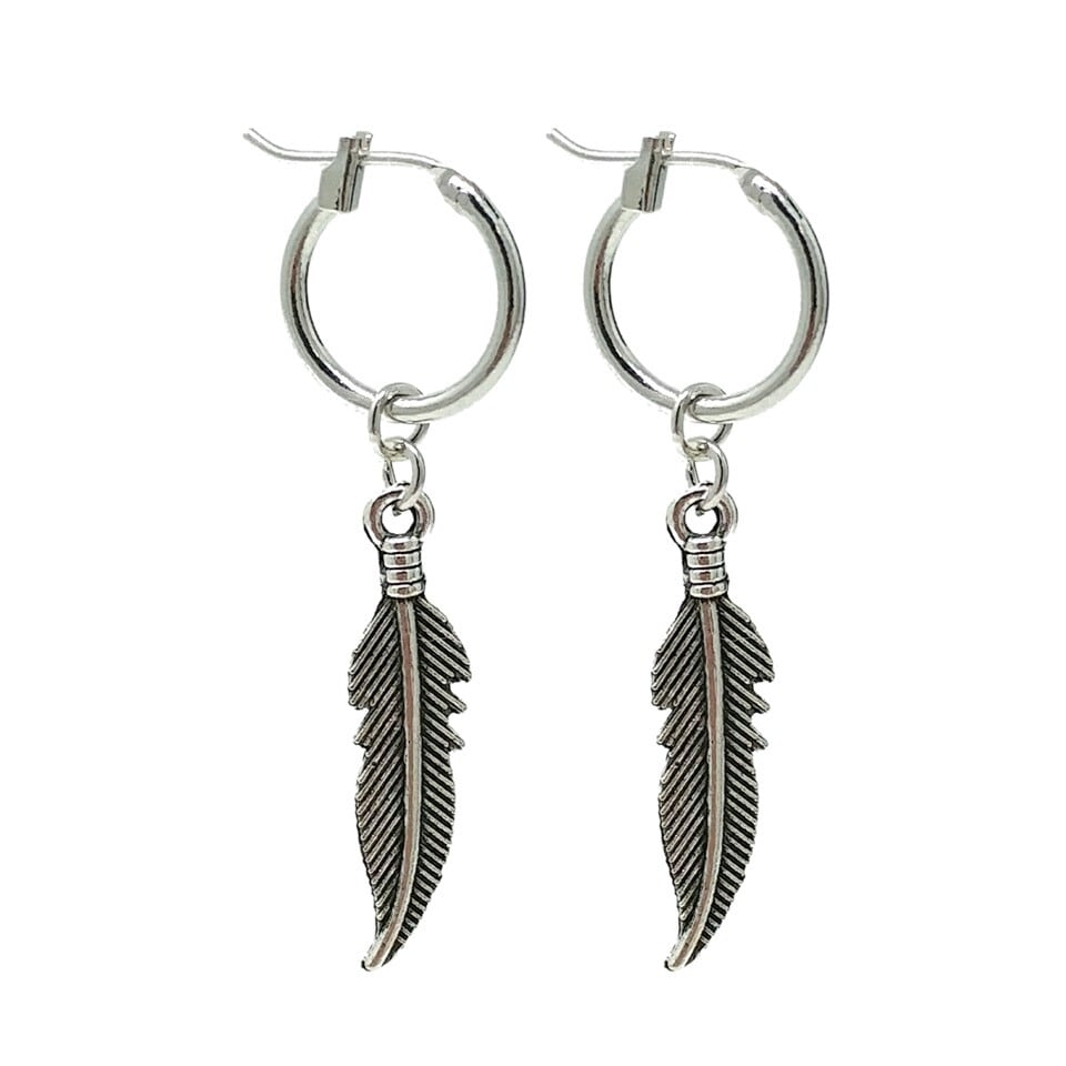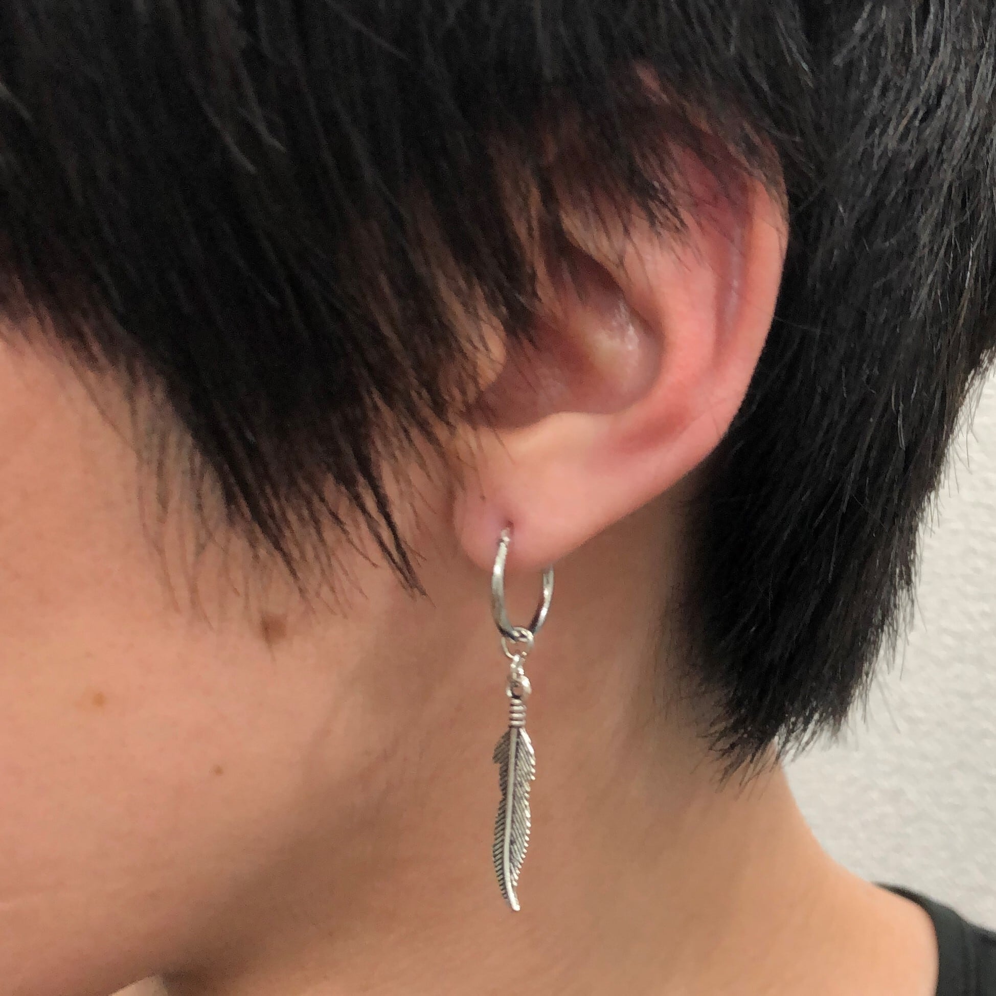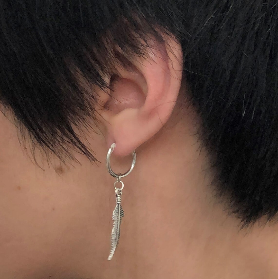 ピアス 羽 フェザー フープピアス フープ 揺れる ゆらゆら メンズ レディース リング シルバー リング リングピアス わっか ゆれる ぴあす 両耳 銀 銀色 韓国 韓流 防弾少年団 BTS SUGA シュガ(A040)