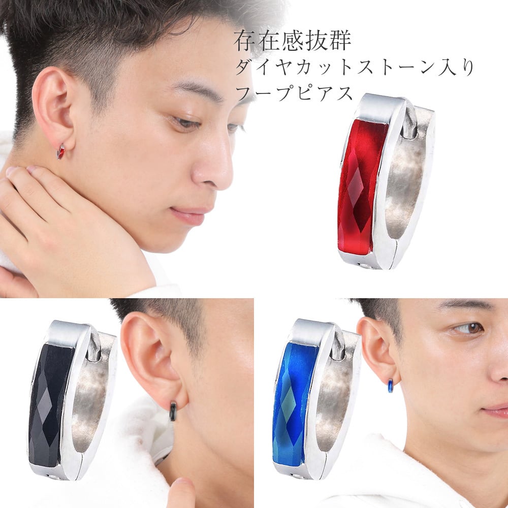 ダイヤカットを施したストーンを埋め込んだ人気のフープピアスです。メンズ、レディース兼用のユニセックスなデザイン性です。
